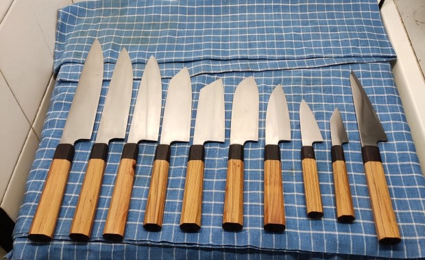 Арно Бернар ми е любимец отдавна и наскоро поднових един негов доста стар модел, като е модифициран, разбира се. Това са две ножчета от стомана 1.4112, 2.5 мм дебелина, последното беше много важно, защото ножчетата са малки; едното е с еленов рог а другото с дръжка от „кумару“, тип бразилски тик. В момента правя още две, … Има още