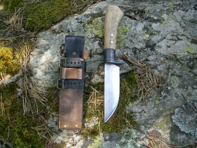 Такаааа, това е класически японски ловен нож. Защо есе – защото това е моят блог и тука мога да пиша каквото си искам, това е моето лично пространство. Защо го обяснявам, защото участвам във форума Knivesbg.com, вече не толкова активно, както преди година – но това е друга тема, та във форума, и не само този, има майстори, полумайстори и кибици; и когато някой покаже нещо започват съвети презглава, това е криво, онова е бяло, що не го сгъна едикакси и пр. Това не ме кефи – не защото работите ми нямат кусури, но аз съм мислил по всички елементи на дадена работа и съм направил това, което съм преценил. Ако аз преценя, че искам съвети на колеги – винаги питам, и за този нож падна голямо питане, търсене на картинки и пр., тъй като нямам пред себе си един такъв нож и да го копирам. Явно ще трябва да преосмисля презентирането на мои неща във форума.