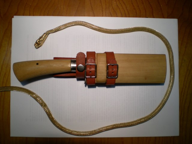 Последно – за културата. За мен това е важно – във всичко има култура и познание, та какви разсъждения направих, работейки по този проект. Традицията защо е традиция, ами защото това е синтезираната практика във времето, останало е това, което е удачно, удобно и достъпно. Разглеждайки тия кании, съставени от две независими части, дървена и кожена, разбрах защо са такива/за мен грозни, като изключим великолепните лакове, с които са направени повечето/ ами тези кании са много лесно заменяеми… Можеш да вземеш кожа от друг нож и да я сложиш на твоя, не случайно на каишките имат по много дупки, ако е само за тая дървения стига само по една. Можеш да смениш дървената част – а каква е главната цел, главната цел е ножът да е хванат надеждно, да не изпада, да може да се вади и прибира с една ръка, въобще – хората са го измислили за да им е удобно за работа. Е това мисля, че е традиция – прости материали, евтини и заменяеми.