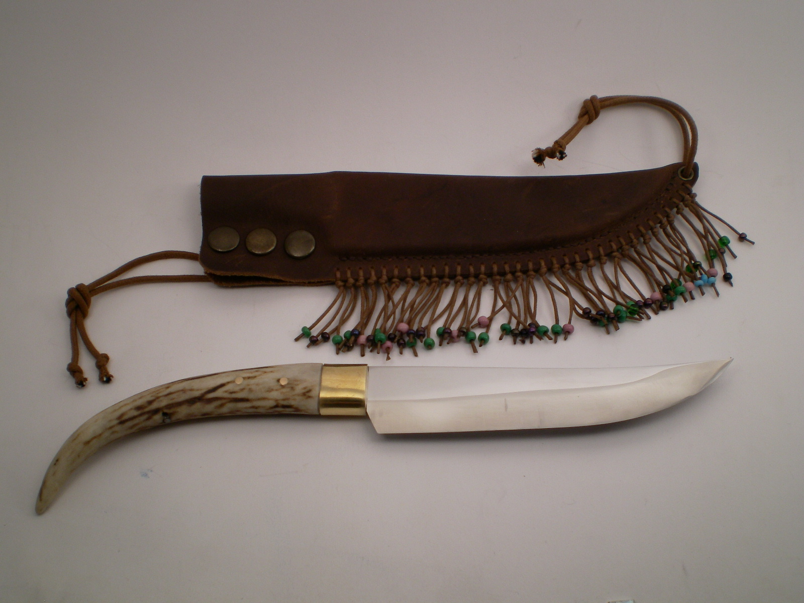 Ножът ми хареса, извадих кадри от филма и така, по картинки стигнах дотук. Дръжката на оригиналния нож е от зъб на брадавичесто прасе, но и досега не успях да намеря такъв. Импрозизирах с еленов рог и всичко останало е мое виждане, защото във филма нямаше подробности.