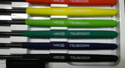 Това са комплект пили за измерване на твърдост на стомана. Японски са и са калибрирани да показват от 40 до 65 HRC – твърдост по Рокуел; има и сравнителна таблица по Викерс. Направих един малък тест, който се вижда от видеото. Линк за видеото: http://www.youtube.com/watch?v=K0A5SQniHgI