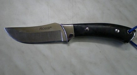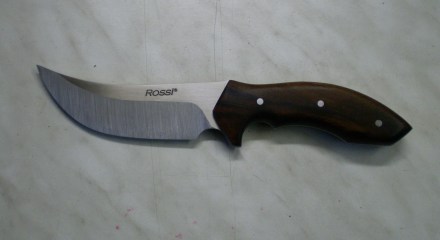 Това острие дойде скроено на лазер, заедно с 6 мм дупки за нитове… , както и да е, само малко е коригирана формата на върха и около гарда, но в крайна сметка, и аз се изненадах, че този нож се оказа много удобен в ръката. Дръжката е от едно „стабилизирано дърво“, които много мразя, много трошливо и … Има още
