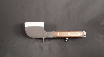 Това е класическа японска градинска брадва. Ползват я точно в градината – колци, храсти, дърва за огъня и пр. Попадна при мене случайно, с ширпотребна дръжка и кания. Поиграх си малко да облагородя вида й. Ами това е – сечивото е интересно, но седи особено в ръката, много тежко е отпред, абе ние не сме … Има още